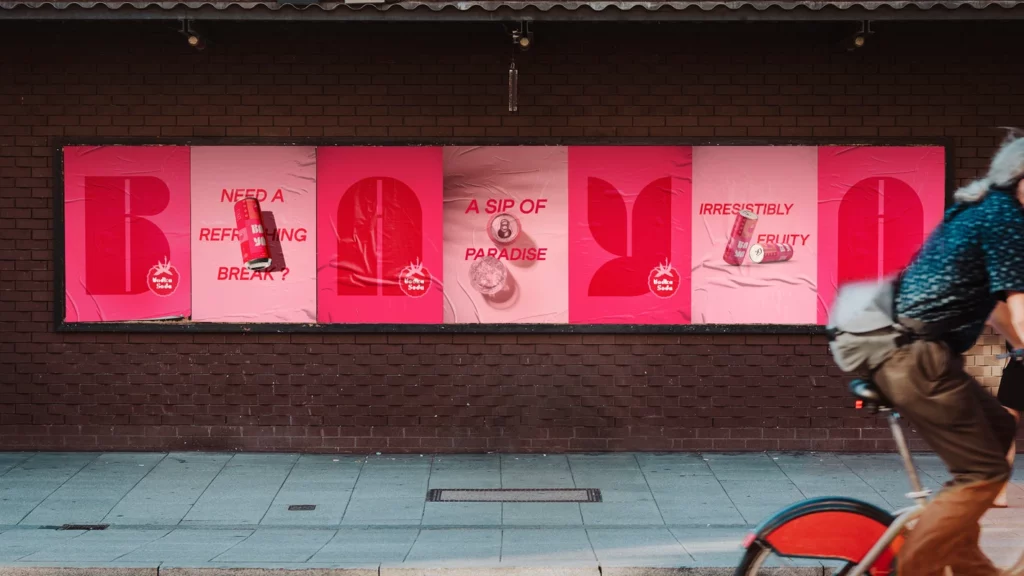 Pour créer l’identité graphique de cette marque, nous sommes partis sur une direction artistique colorée, dans les tons rosés / rouges pour rappeler les fruits rouges, le tout accompagné de formes géométriques dans un style rétro. Les canettes sont plein de pep’s et éclatantes en lien avec l’été.