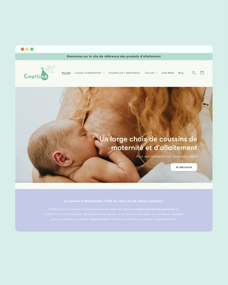 Coussiné est une enseigne française d’e-commerce spécialisée dans les produits d’allaitement. On y retrouve entre autres des coussins d’allaitement, des tire-laits, des cale bébés et des porte-bébés. Coussiné met en avant des produits qui facilitent le quotidien des mamans et des parents.