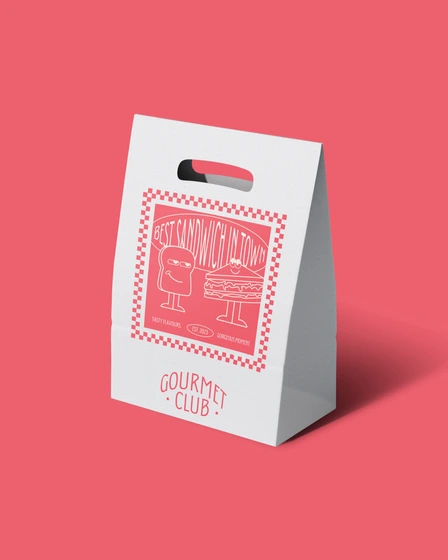 GOURMET CLUB est une sandwicherie qui met la gourmandise au cœur de son concept. Pour traduire cet esprit généreux et convivial, nous avons imaginé une identité visuelle chaleureuse s’appuyant sur une palette rouge et blanc. Les motifs à carreaux, inspirés des nappes de pique-nique, apportent une touche réconfortante et authentique qui ancre immédiatement la marque dans l’univers du plaisir simple et bien préparé.
