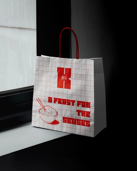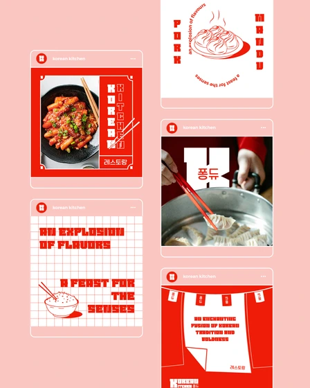 Des quadrillages rouges subtils sont intégrés dans le design, rappelant les motifs traditionnels utilisés dans l’art et l’artisanat coréens, ajoutant une touche d’authenticité et de sophistication à l’ensemble de la charte graphique.
