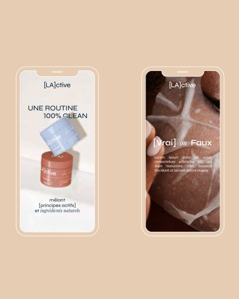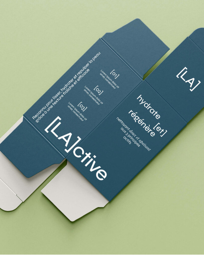 [LA]ctive est une marque de cosmétiques distribuée en pharmacie, pour laquelle nous avons conçu une identité visuelle sobre et minimaliste, en accord avec les codes de confiance et de sérieux propres à l’univers dermocosmétique. L’objectif était de proposer une image claire, rassurante et lisible, tout en restant moderne.