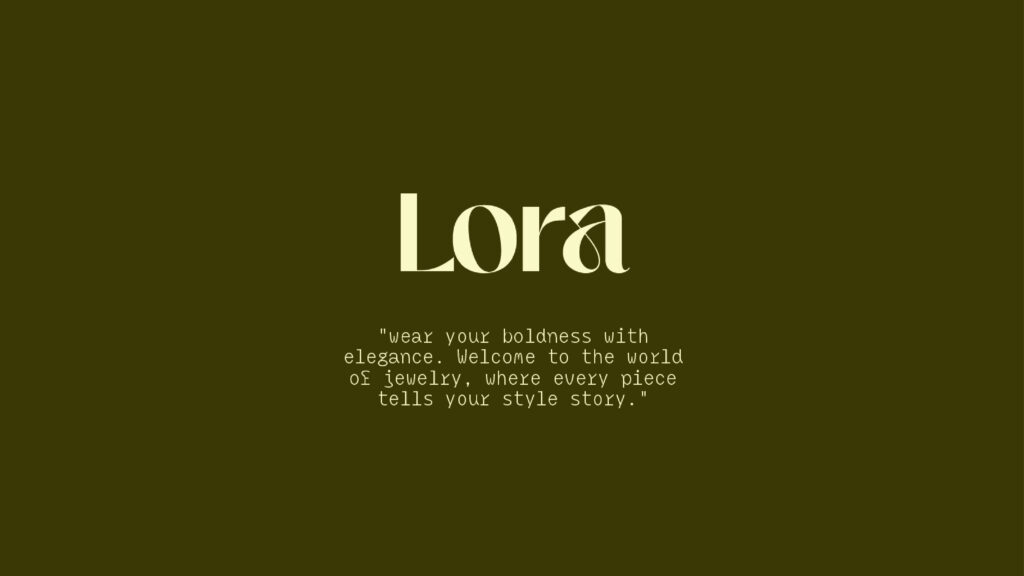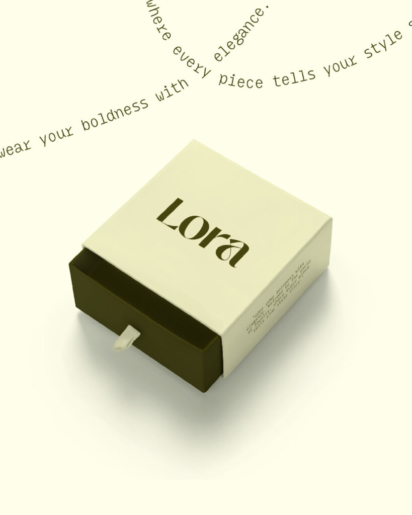 LORA est une marque de bijoux contemporaine, pensée pour une clientèle raffinée et connectée aux tendances. Pour refléter cet univers esthétique, nous avons travaillé une palette élégante mêlant un vert kaki doré à un crème lumineux, deux teintes chaleureuses et sophistiquées très présentes dans le milieu de la bijouterie. L’identité visuelle s’appuie également sur des photographies de bijoux portés par de jolies femmes influentes, permettant de renforcer l’aspiration, la modernité et le caractère mode de la marque.