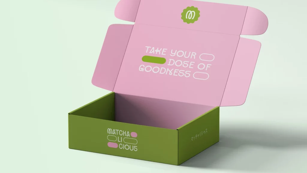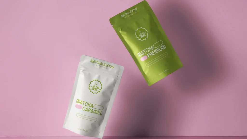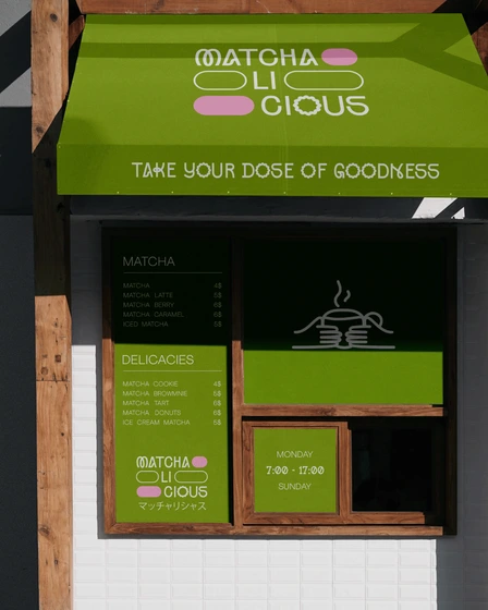 Matchalicious est une marque de matcha tout droit venue du Japon. Pour réaliser cette identité visuelle, nous avons joué sur la couleur du matcha, le vert, en la dynamisant avec du rose. La marque se construit autour de plusieurs éléments graphiques :